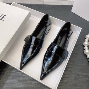 2025春秋季新款尖头平底单鞋两穿式平跟软底英伦风小皮鞋女鞋瓢鞋
