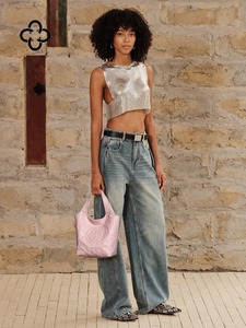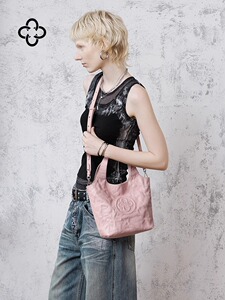 CASSILE卡思楽超小菜籠包バケツ包ピンク2025新高級感シワ斜めショルダーバッグ女