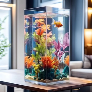 ミニ正方形アクリル金魚水槽デスクトップホームリビングルーム小型透明落下防止水族館