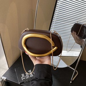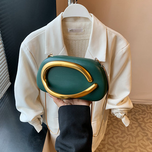 ヨーロッパとアメリカのトレンディなクラシックラウンドボックスハンドヘルドイブニングバッグミニバッグレトロメタルハンドルチェーンショルダークロスボディバッグ