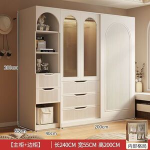 1.8m ワードローブ + サイドキャビネット + トップキャビネット/組み合わせセット