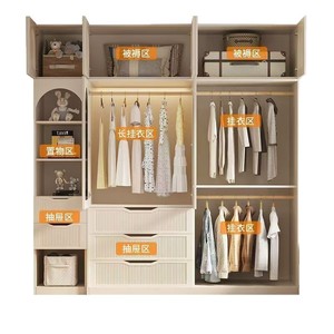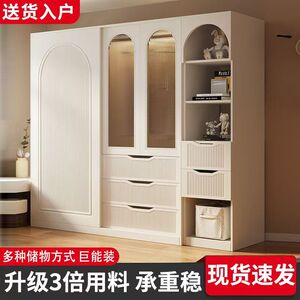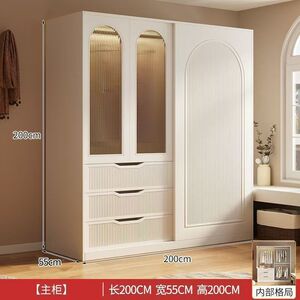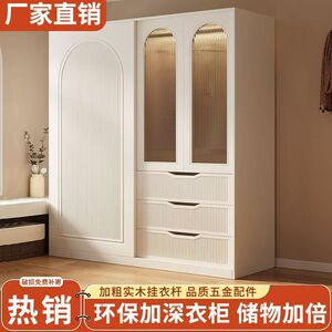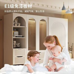 フレンチクリームスタイルのワードローブ、小さなプッシュプルドア、ホームベッドルーム収納キャビネット、モダンでシンプルなハイエンドの完成したワードローブ