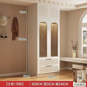 0.8m ワードローブ + サイドキャビネット + トップキャビネット/組み合わせセット