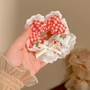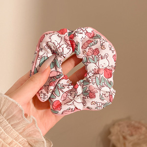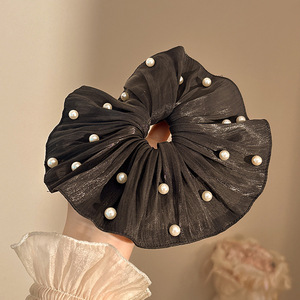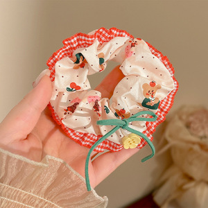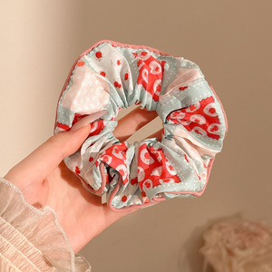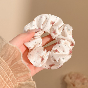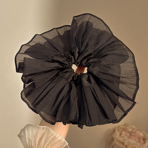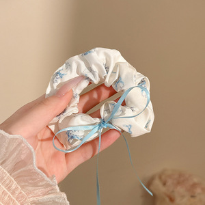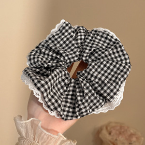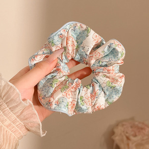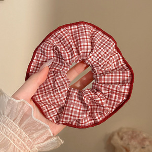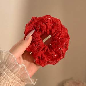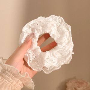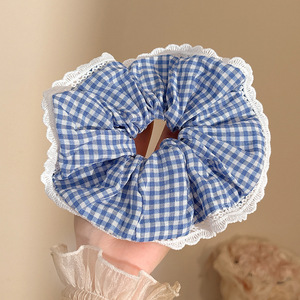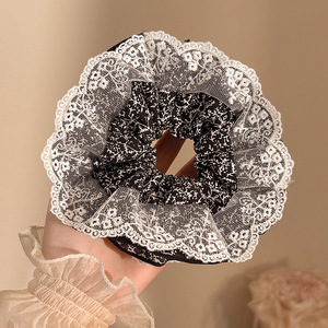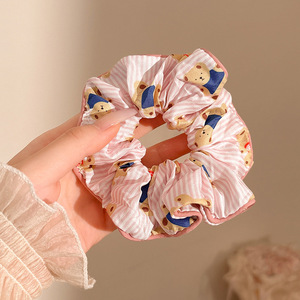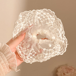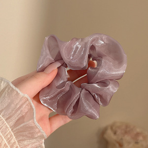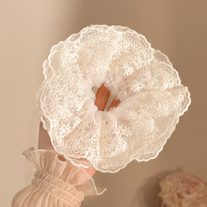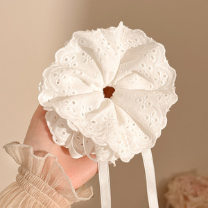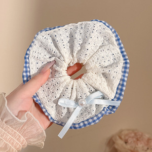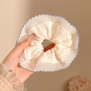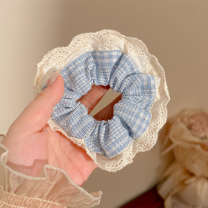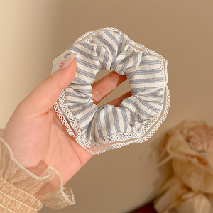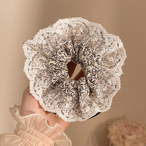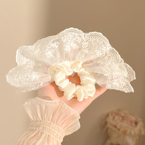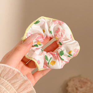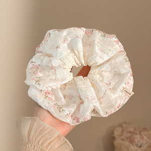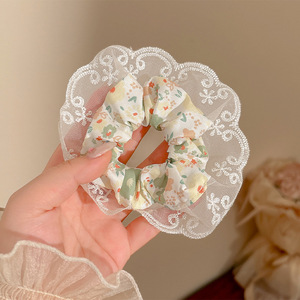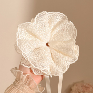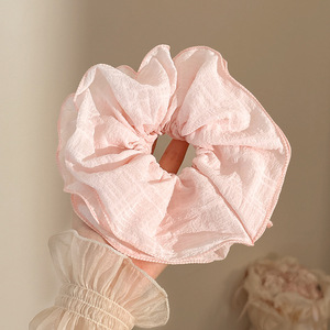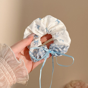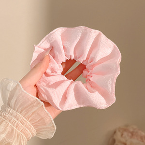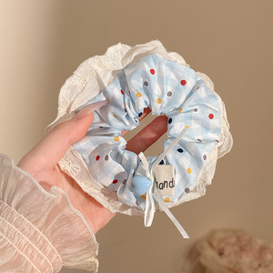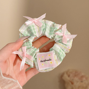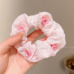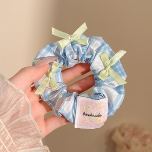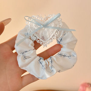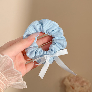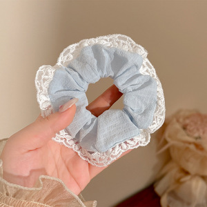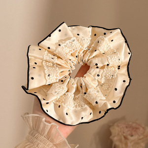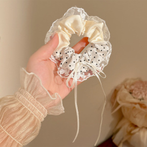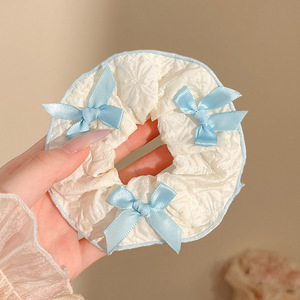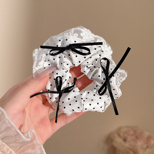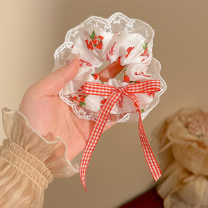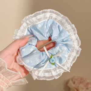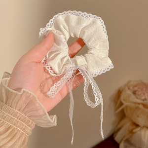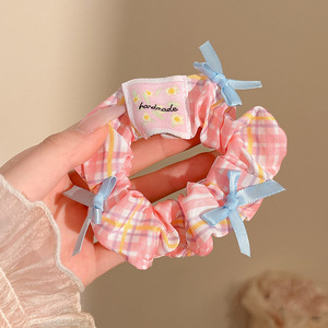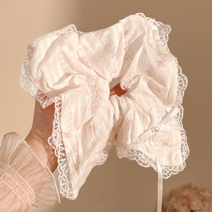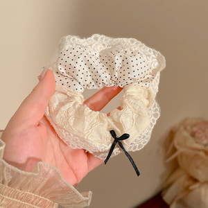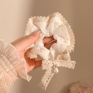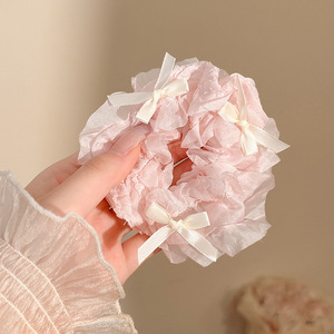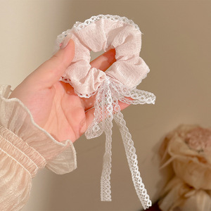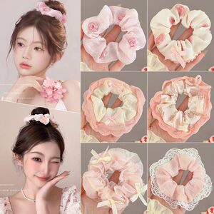 甘いピンクのレースの大腸の髪の輪の女性2025新型の高級感は髪の毛のひもの蝶結びの髪の飾りを結びます。