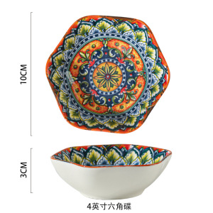 セラミックモロッコ小皿家庭用六角形調味料皿ソース皿スナック皿ディップ皿醤油ディップ皿