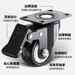 双轴承万向轮通用万向轮刹车定向小推车轮子聚氨酯轮茶几家具轮