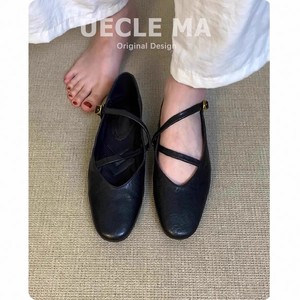 女性用フレンチシングルシューズ、フラットソール、2025春秋の新スタイル、非常に柔らかく快適なイブニングスタイルのバレエシューズ、ブラウンのレトロなメリージェーンシューズ
