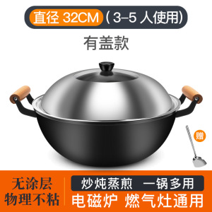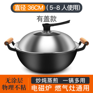 ✅ 厚みのある昔ながらの双耳鉄鍋中華鍋家庭用深めのシチューポット平底大型ノンスティック鍋電磁調理器中華鍋