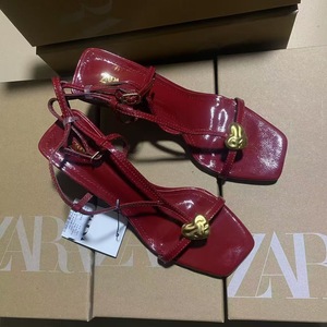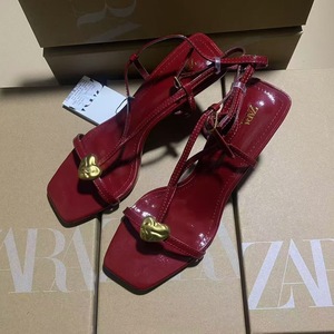 ZA夏季新品2025细带高跟鞋金属扣饰一字带凉鞋细跟后绑带女凉鞋