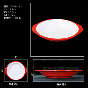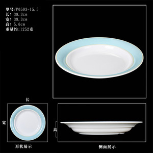 メラミン模造磁器の厚みのある丸皿、鶏の刻んだピーマンと魚の頭の深皿、白身の鶏の炒め物、農家の家庭料理の大きな皿