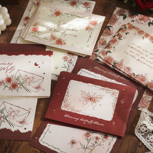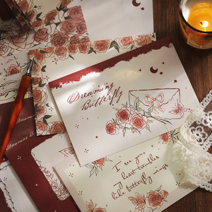 浪漫玫瑰信封信纸套装创意复古高颜值插画表白祝福留言礼物信笺