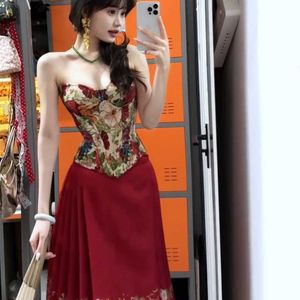 プラスサイズのファットMM新しい中国風のチューブトップと馬面スカート夏の高級フィッシュボーンスカートツーピーススーツ