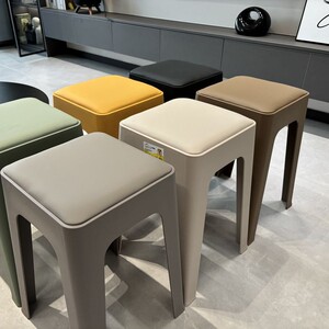 塑料凳子软包加厚家用可叠放客厅现代简约板凳久坐舒服商用餐椅子