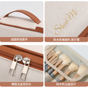 スリーインワン多機能パーテーション収納PUポーチ大容量高級感ポータブル手持ちメイクブラシ収納バッグ