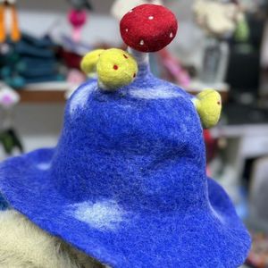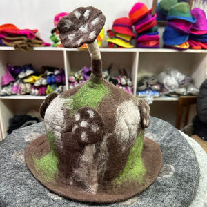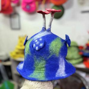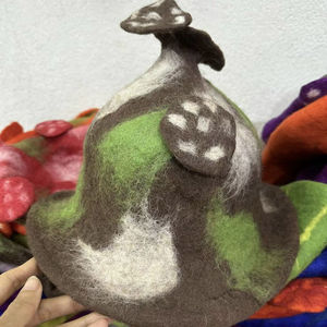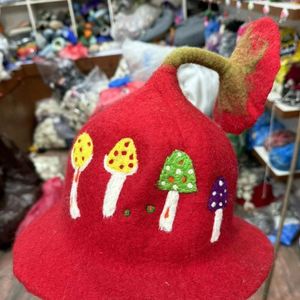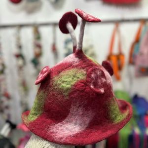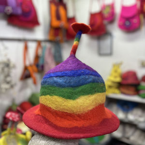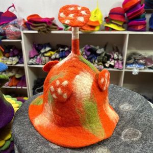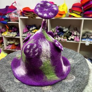 尼泊尔嬉皮韩系爆款蘑菇帽手工羊毛毡彩色紫色个性超萌圆帽子男女