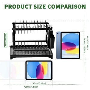 国境を越えた台所の水切り棚の食器棚の食器棚の食器棚の家庭用食器と箸のナイフとフォークの収納棚のテーブルの上に食器棚を干します。