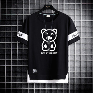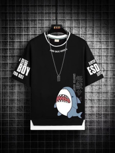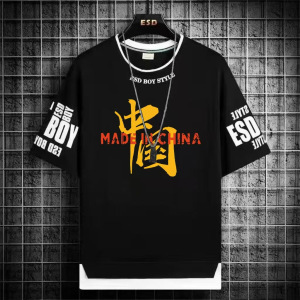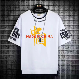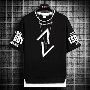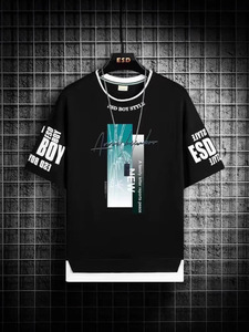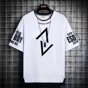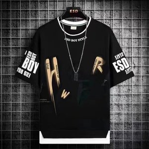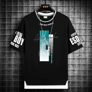 夏 12-16 歳の男の子 Tシャツプリントトレンディな半袖 Tシャツ中学生とティーンエイジャースポーツとレジャーのボトリングシャツ