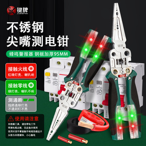 電気技師用電気テスト付きキー型ワイヤーストリッパー、新しい多機能電気技師用ペンチ、ステンレス鋼電気ペンワイヤーストリッパー