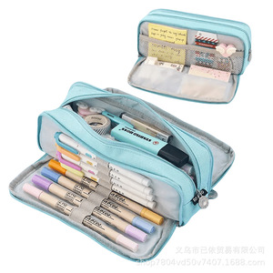 大容量鉛筆ケース4つの仕切り、筆袋はジッパー付き携帯ハンドル、小学生の筆袋文房具収納袋