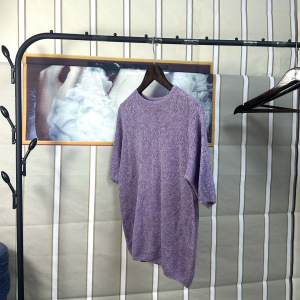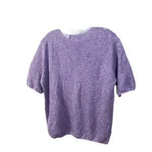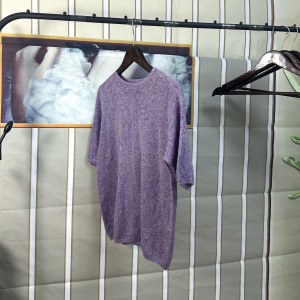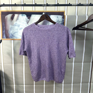 夏季新款女薄短袖绝美百搭宽松套头浮雕紫色时尚针织衫上衣