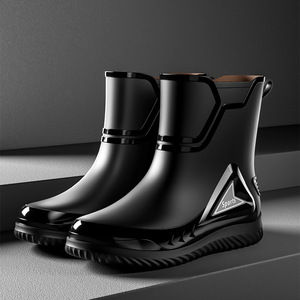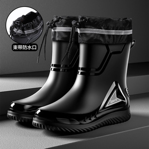 男性用レインブーツ、新しい防水アウトドアウォーターシューズ、キッチン滑り止め作業用ゴム靴、ベルベット暖かいレインブーツ
