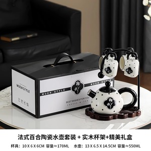 (リリー) フレンチ水玉ウォーターセット ポット1個・カップ4個 収納ラック付き