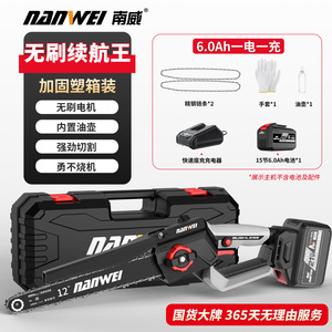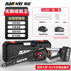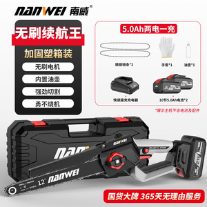 Nanwei ブラシレス 12inch 半自動電気チェーンソー高速家庭用ハンドヘルド充電式電気チェーンソー伐採剪定鋸