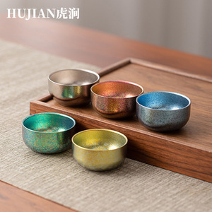 Huding虎渓谷チタンカップ純チタンカップ高級主人カップ品茗杯工夫カップ二重断熱茶碗