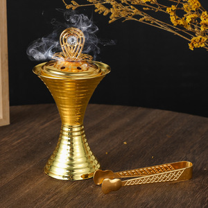 アラビア鉄製の小さなアロマセラピー炉、金色の糸の小さな装飾品、中東のリビングルームの燭台、香の挿し工芸品バーナー