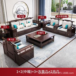 新しい中国風の全無垢材ソファ組み合わせ冬と夏のハイボックス収納モデルモダンなハイエンド中国風のリビングルーム家具