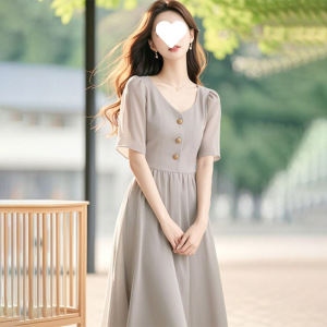 フレンチスタイルのシンプルな半袖ドレス2025夏の新しいスタイルの控えめでエレガントな高貴なシフォンロングドレス