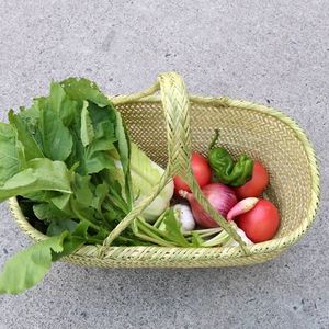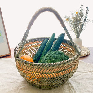 手持ちの大きな竹かご、竹編みの家庭用果物狩り、野菜かご、卵、小さな竹かご、収納かご