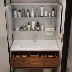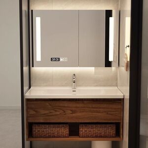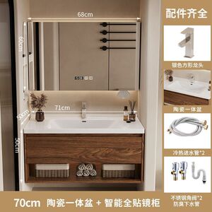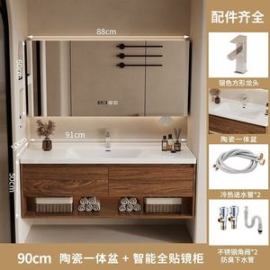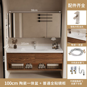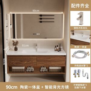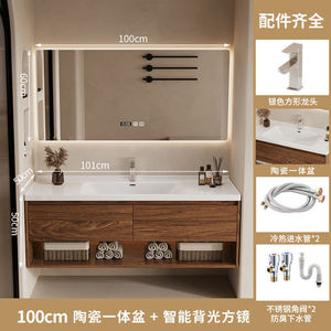 轻奢胡桃色浴室柜陶瓷一体盆洗手池卫生间洗漱台洗脸盆柜组合套装