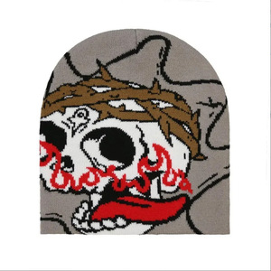 欧米の秋冬のファッションに合わせて、毛糸帽子の防寒保温ニット帽のファッションキャラクター模様のジャカード帽子が国境を越えています。