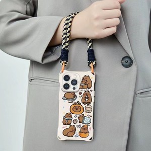 ミルクを飲むカピバラ Apple 15promax 携帯電話ケース クロスボディ 14 ストラップ クリエイティブ iPhone13 バックパック 12 クリエイティブ