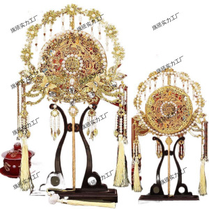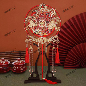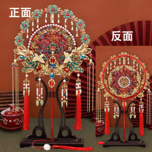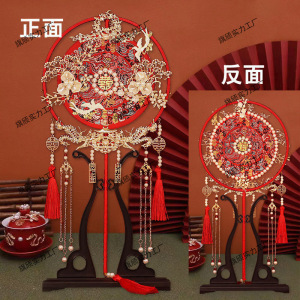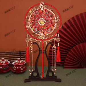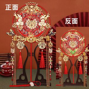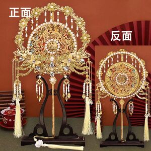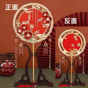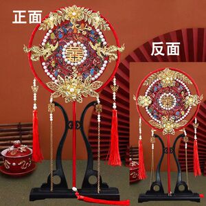 中国風の結婚式の扇子、明製漢服扇子、完成品、高級長柄二重丸古代風宮殿扇子、DIY素材パッケージ