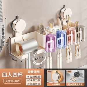 ドラム吸盤 乳白歯ブラシホルダー 4人用 + 4色カップ + ヘアドライヤーホルダー 38021