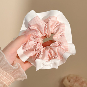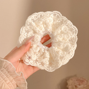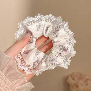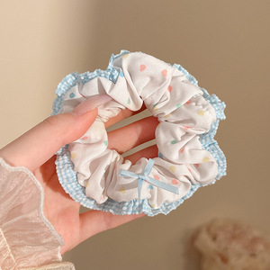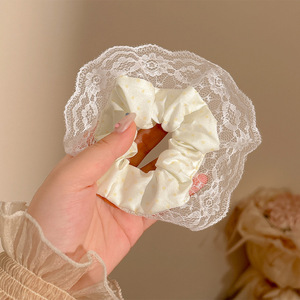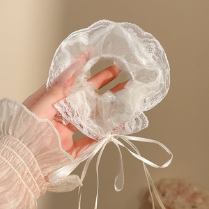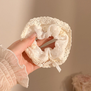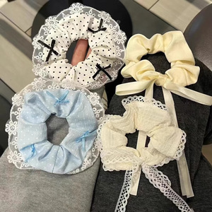 韓国風クリーム水玉大腸ヘアバンドバレエ風ガールヘアロープレースリボンリボンレースヘッドバンドヘアアクセサリー