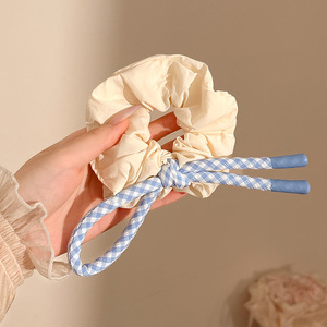 1#オフホワイトのヘアゴム、ブルーのチェック柄のヘアゴム、ヘアゴム約11cm、ヘアゴム約19cm