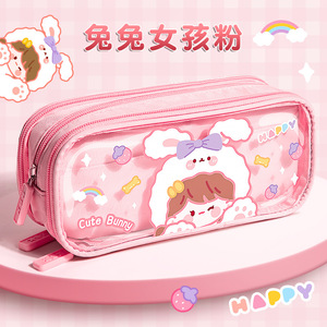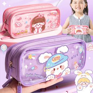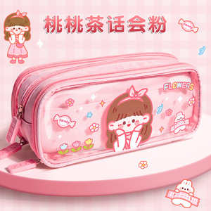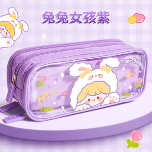 文具箱 高見え多機能キャンバス透明筆箱 中学生 女子 小学生 大容量 クリエイティブ筆箱