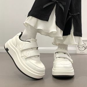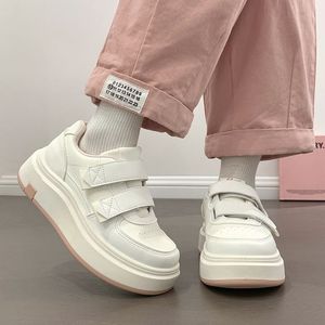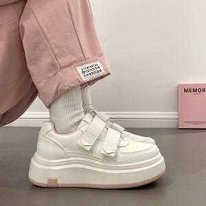 爆発的な女性靴の厚い底の白い靴2025春の新しいマジックは板靴を貼ります。