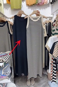 春夏ストライプキャミソールドレスノースリーブゆったり大きいサイズファットmmアウターウェアインナーレイヤリングボトムスリットロングスカート