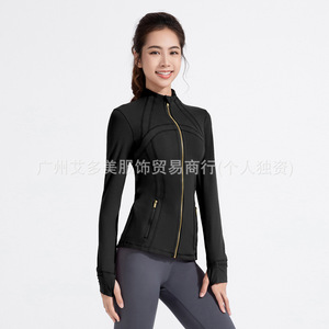 alo トップヨガウェアレディースゴールドジッパースリムジャケット長袖ランニングスポーツレジャーフィットネス速乾ジャケット