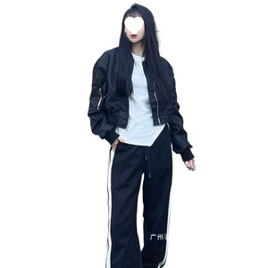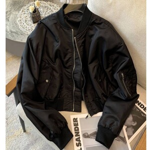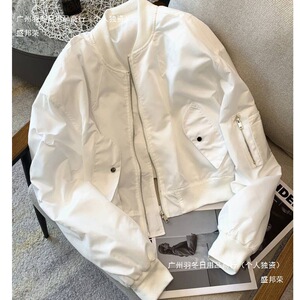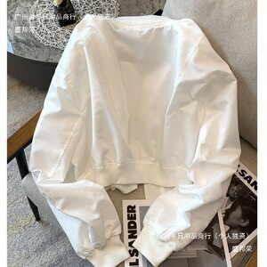 ホワイトレトロジッパーフライトジャケット女性の韓国怠惰なスタイルのコート黒スタンドカラーファッション 2024 春トップ