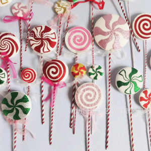 クロスボーダークリスマスデコレーションシミュレーションカラーキャンディグリッターパウダークリスマスデコレーションロリポップ挿し木クリスマスツリーデコレーション
