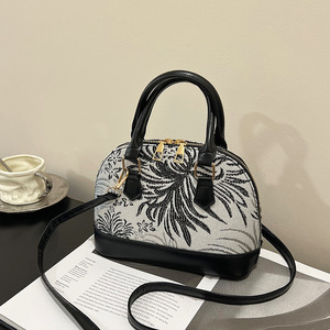 流行时尚花纹高级设计感单肩斜挎包2025夏季新款简约手提贝壳包女
