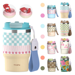 国境を越えた新型二重飲料ロープ12ozコーヒーカップ304ステンレス鋼高颜値アニメ携帯ストロー保温カップ