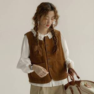 フレンチコーデュロイベスト女性の 2025 春の新レトロノースリーブトップベスト学生アウターベストジャケット