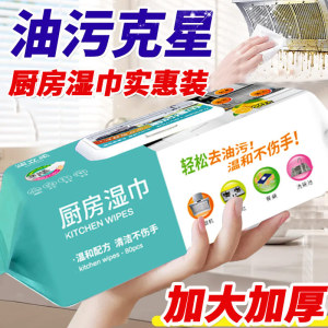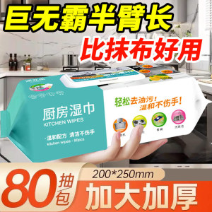 キッチン掃除用ワイプ 80枚入り 厚手大容量パック 家庭用ウェットティッシュ コンロの汚れ落とし・油落とし用 大型油落としツール
