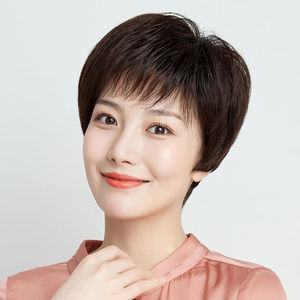 女性用ショートヘアウィッグ、本物の人毛、中高年ママ向けの本物の人毛、女性用フルヘッドギア、本物の人毛ウィッグ、ナチュラル